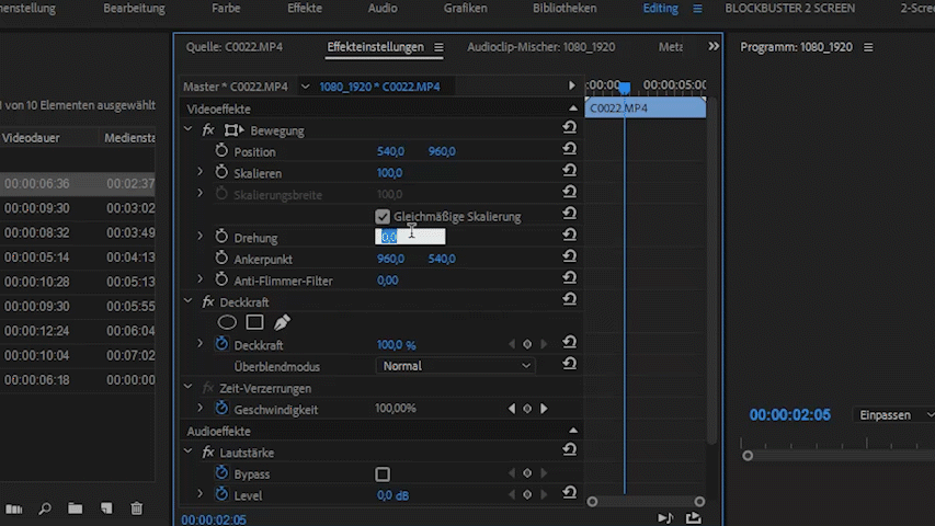 Eine Vorauswahl mit Effekteinstellungen drehen